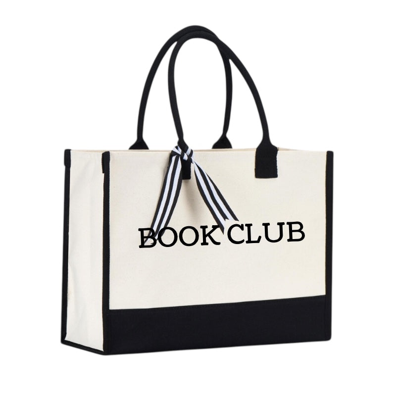 Our new Karma Collection has the cutest essentials for every age! Our brand new Karma tote bags are the perfect gift or for yourself! These open top totes are made of thick, durable canvas. This limited time "Book Club" tote is perfect for taking all your books on the go!  It is comes with a cute ribbon attached and is a great size!